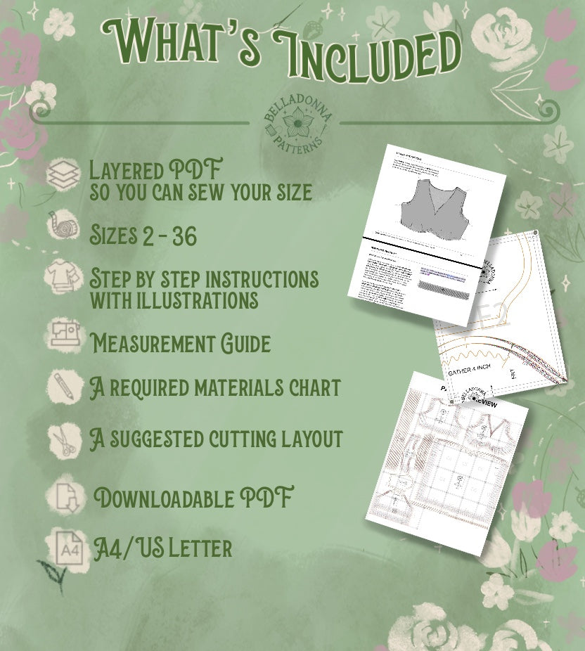 Due to the nature of digital products, all sales of sewing patterns from Belladonna Patterns are final and non-refundable. Once a pattern has been downloaded, it is considered delivered and cannot be returned or exchanged. For further details, please visit our Return Policy page here.