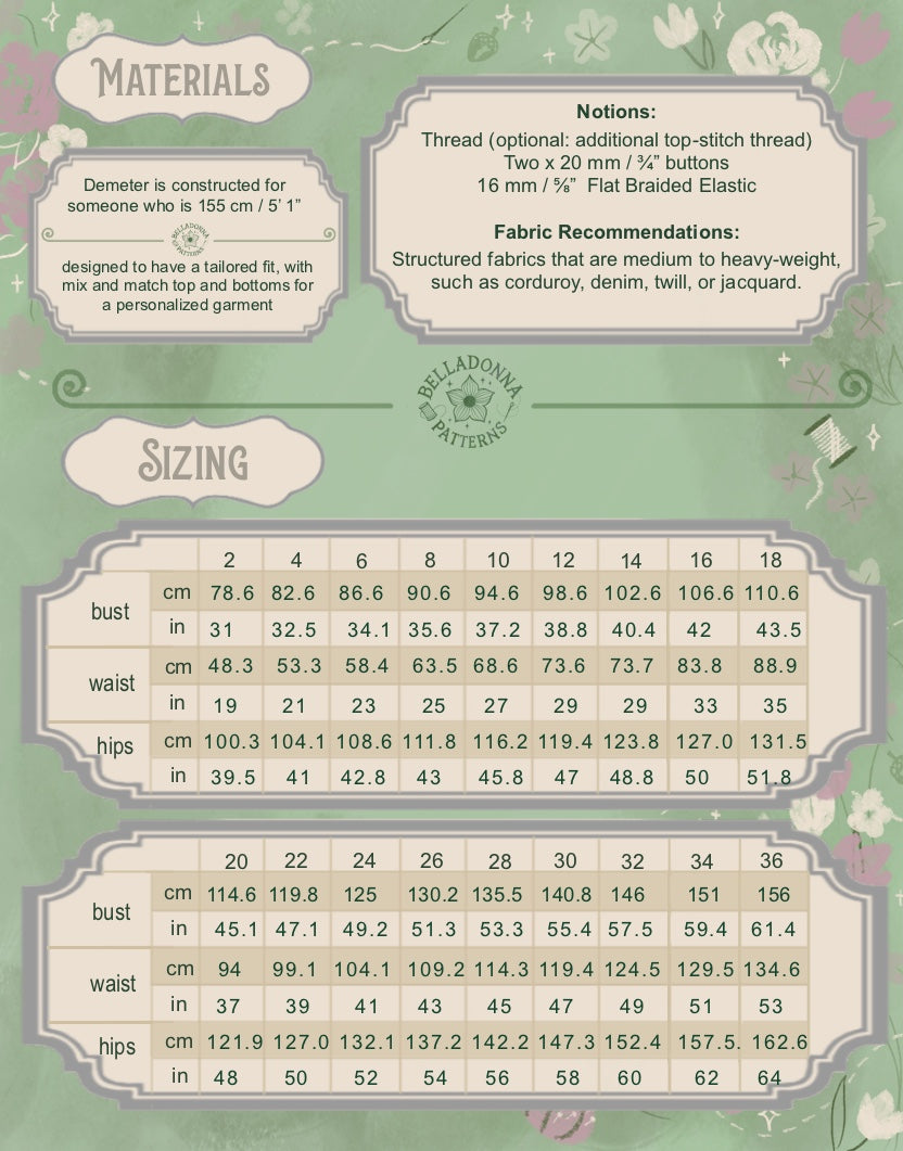 Sewing pattern sizes are not the same as store-bought clothing sizes! Always take your measurements before choosing a size to print or cut.